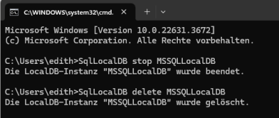 Sind verschiedene Versionen von LocalDB installiert wird die älteste Version verwendet. Es kann hilfreich sein die multiplen Versionen zu deinstallieren. Wenn Sie von der Edithek Homepage: https://edithek.de/node/1 die aktuelle Version 2022 von LocalDB heruntergeladen und installiert haben, so können Sie explizit die Verwendung von Version 2022 administrieren.