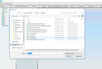 Unter (c:) Programme (x86) / Inventory / Tabellen finden Sie Beispieltabellen zur Orientierung des Aufbaus. Die Spalten sollten unbedingt die jeweiliegen Bezeichnungen besitzen.