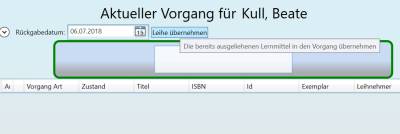 Klicken Sie den Knopf „Leihe übernehmen“.