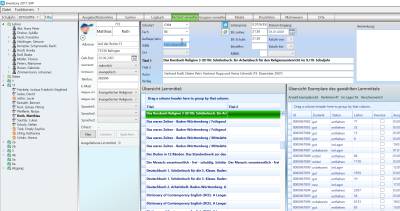 Sie können über alle Datenbestände suchen. Hierbei können ganze Ausdrücke oder auch Fragmente zur Suche verwendet werden. Im rechten Teil des Fensters können Sie vorhandene Barcodes untersuchen. Geben Sie hier den Barcode eines Lernmittels ein und sehen Sie, um welches Lernmittel es sich handelt und wer es momentan ausgeliehen hat.